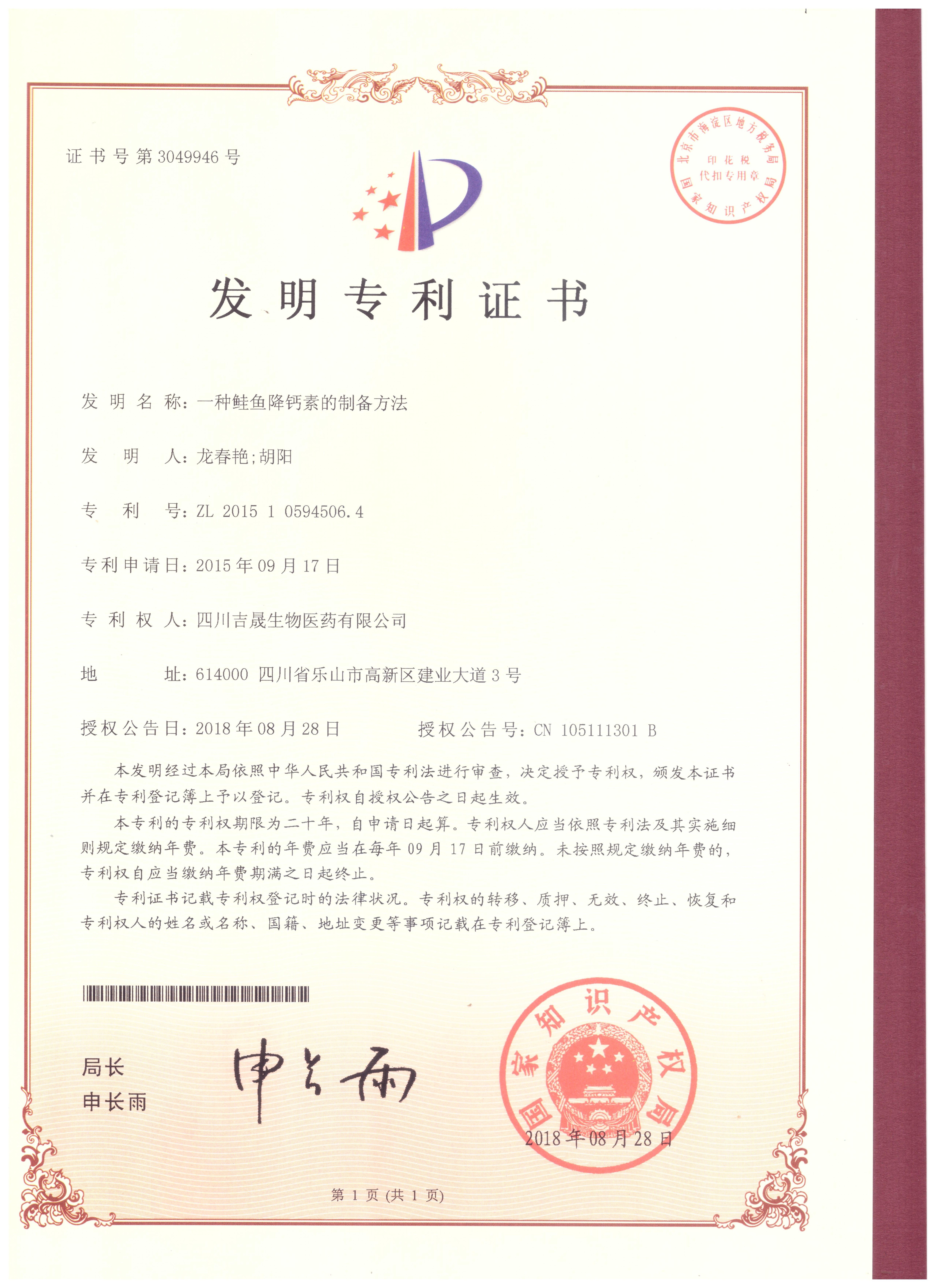 生物發酵專利 依替巴肽專利 鮭魚降鈣素專利 |