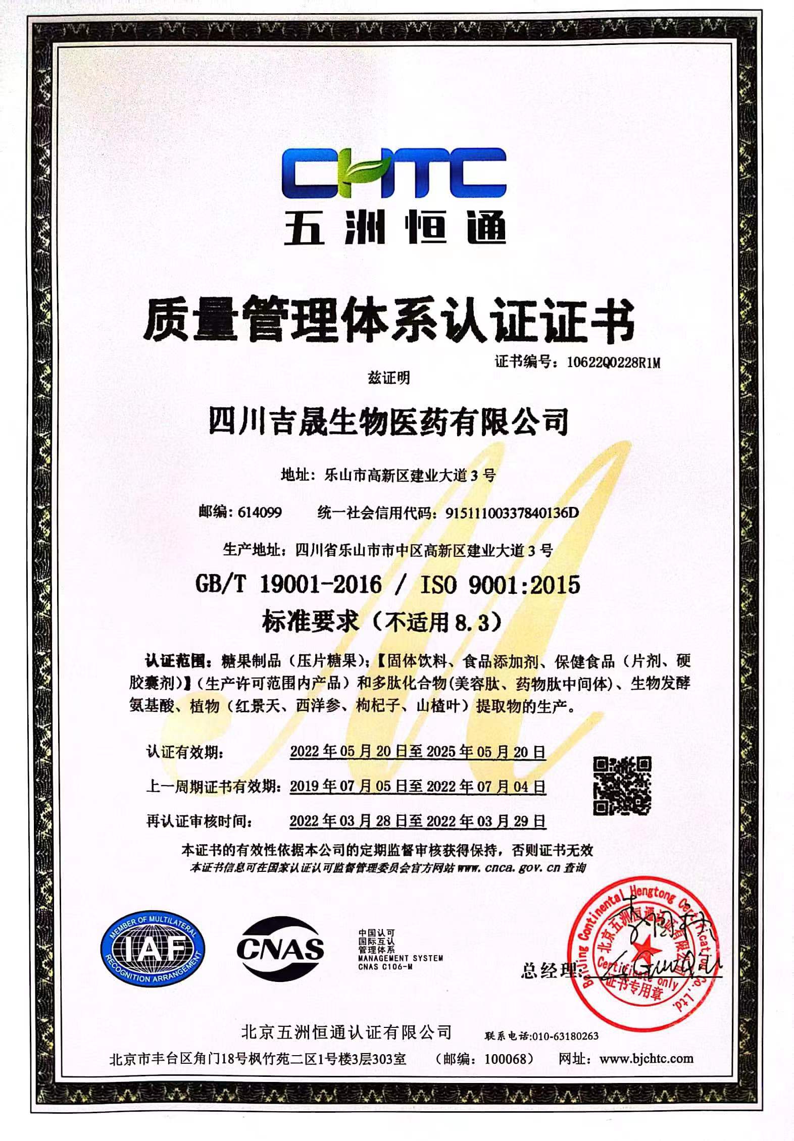 四川(chuan)吉(ji)晟(sheng)生(sheng)物醫藥有限公司(si)成立于(yu)2015年,位(wei)于(yu)四川(chuan)樂(le)山高新(xin)技術(shu)開(kai)發區,工廠占地(di)面積6萬多平方米,是一家集(ji)產品(pin)研發、生(sheng)產、銷售(shou)為一體的國家高新(xin)技術(shu)企(qi)業,通過了ISO9001、Kosher質量認(ren)證(zheng),2022年榮獲(huo)樂(le)山市首(shou)家“瞪羚企(qi)業”。