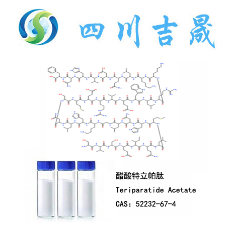 特立帕肽/CAS:52232-67-4 產品編號:JD003 中文(wen)同義名:特立(li)帕肽;特立(li)帕肽 英文名:Teriparatide CAS:52232-67-4 純度:98% 外觀:白色粉末 包裝規(gui)格:1g, 10g, 100g 儲存條(tiao)件:-20℃密封保(bao)存 分子式:C181H291N55O51S2 分子(zi)量:4117.72 四川(chuan)吉晟作為特立帕(pa)肽專業生(sheng)產廠家,我們價格優(you)惠,產品純度(du)高,庫存(cun)充(chong)足,當天(tian)下(xia)單當天(tian)發貨。